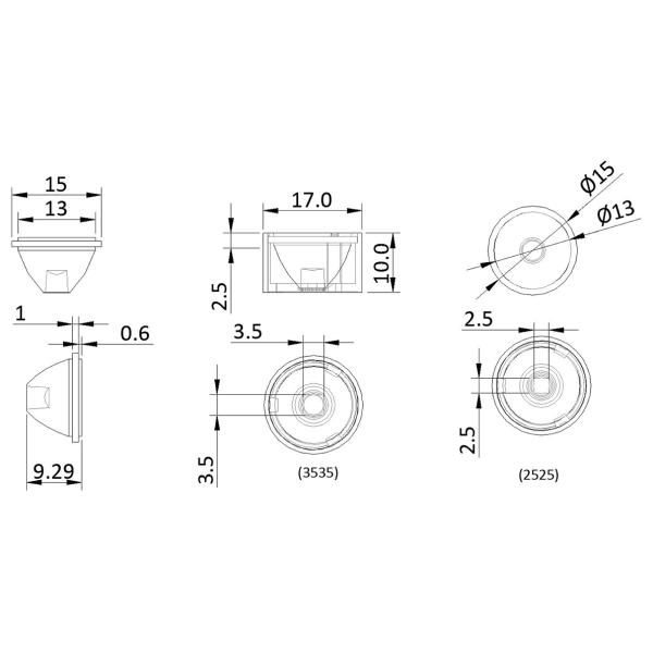 8 Lighting Angles Φ15mm Size 3030/3535 LEDs High Power Water Resistance LightWeight Single Lens Images |